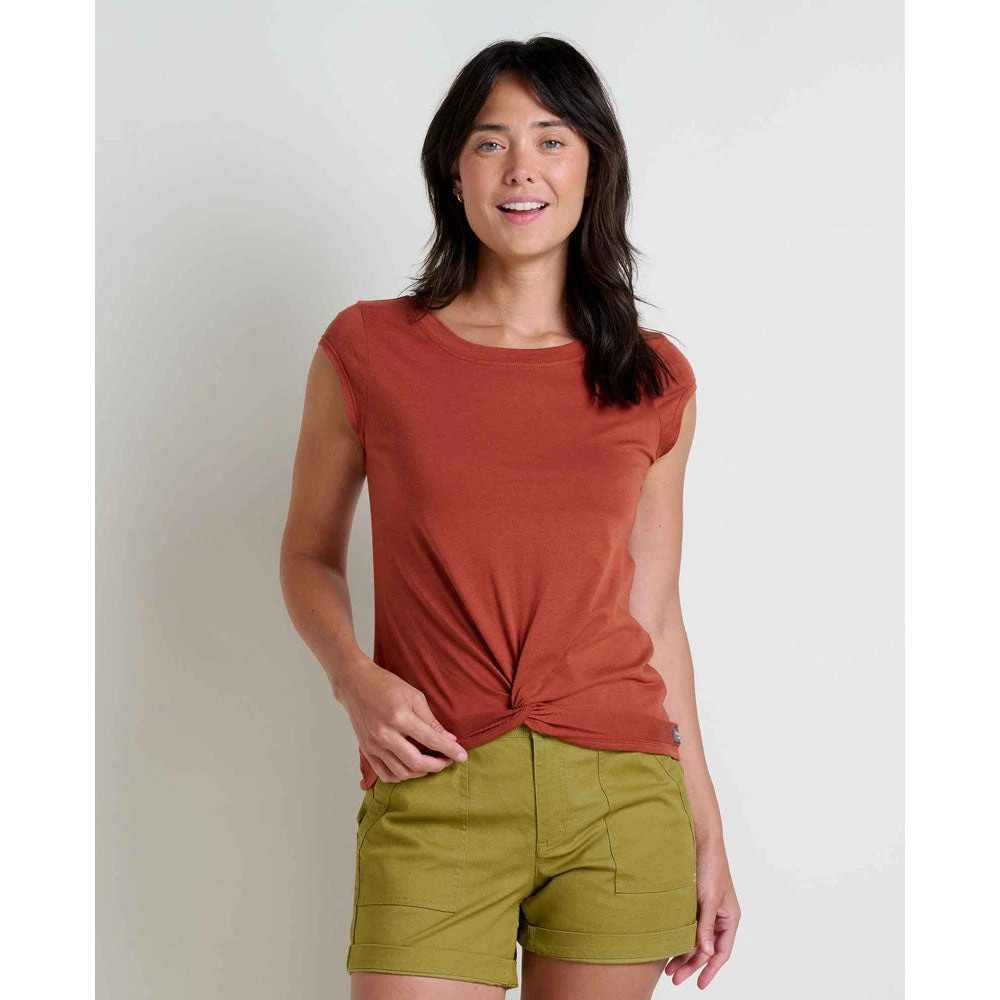 There’s a lot to love about this top. It’s made from our Tri-County Jersey fabric and is 100% near sourced. What does that mean? It means the carbon footprint on this shirt is crazy low. From its eco cred to the simple scoop neck and flattering twist tie detail in the front, this top is all around awesome.